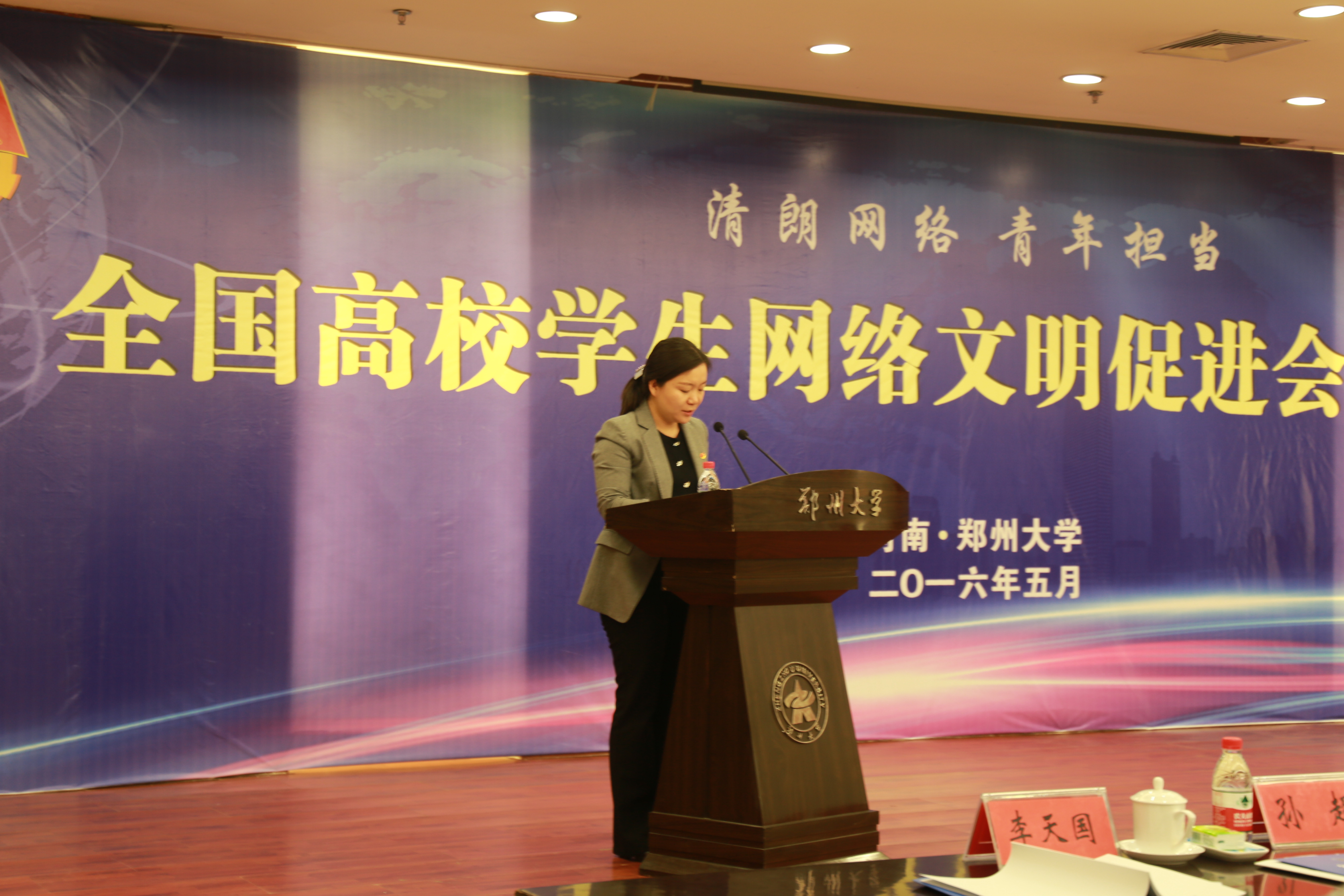 5月14日,全国高校学生网络文明促进会联盟年会在郑州大学召开。厕所偷拍 蕙风漫语网络文化工作室采编部部长叶子熙、外联部部长黄伟鹃受邀参加了此次会议。