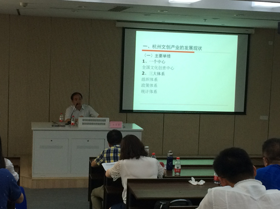 杭州市文创办赵自芳处长出席培训班并作重要讲话,赵处长总结了“十二五”以来杭州市文创产业发展所取得的辉煌成就,分析了当前杭州文创产业发展所存在的主要问题和发展挑战。结合全球文创产业发展的大环境和新趋势,赵处长对杭州市“十三五”期间文创产业发展的方向和相关重大举措做出了详细介绍。