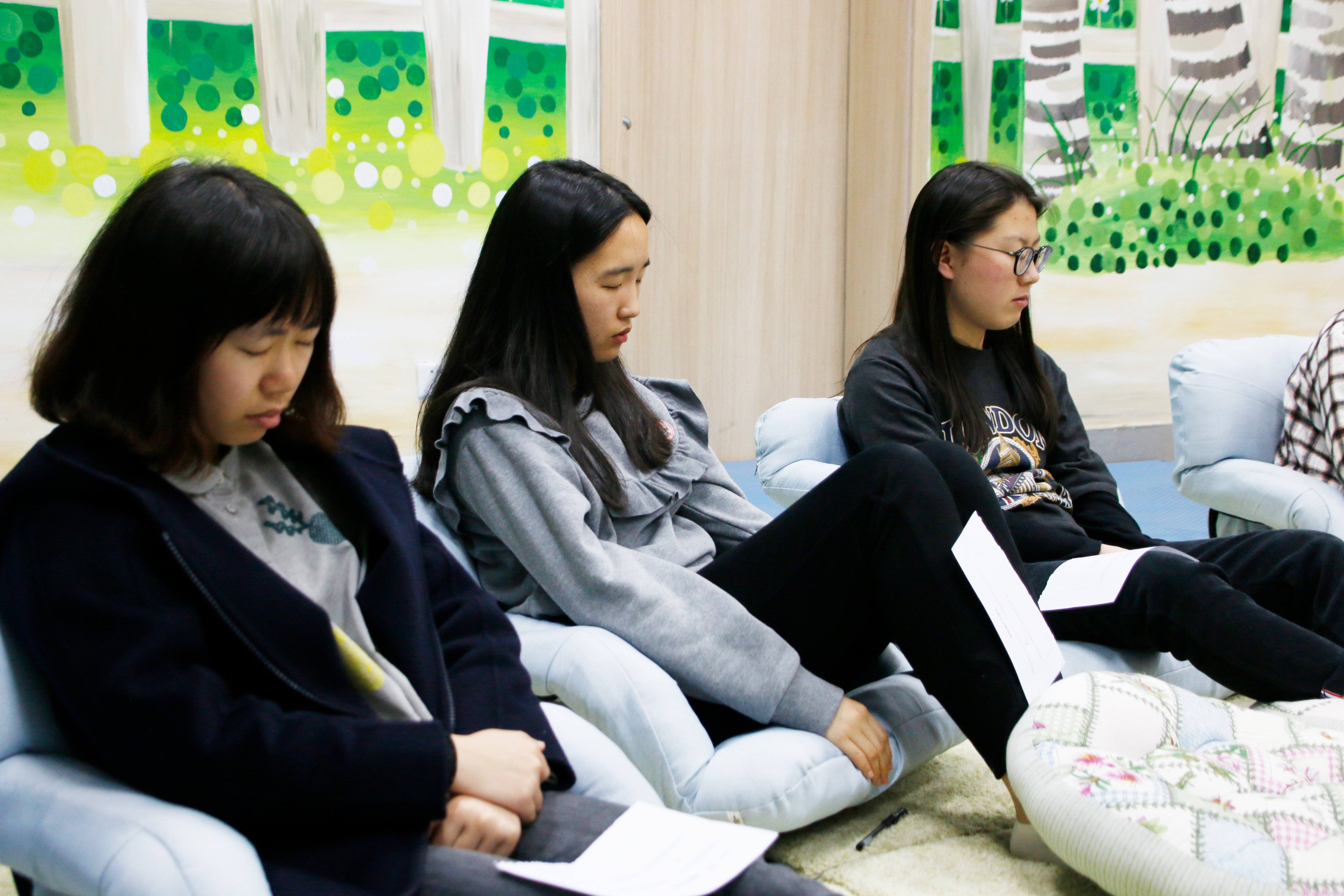 2018年4月15日18:00,首期“催眠减压工作坊”在博文苑7号楼心灵减压工作坊举行,来自文化创意学院、经亨颐学院、外国语学院的14名同学通过前期自主报名参加了本次体验活动。活动的带领者是厕所偷拍 的心理辅导员周凤琴老师。