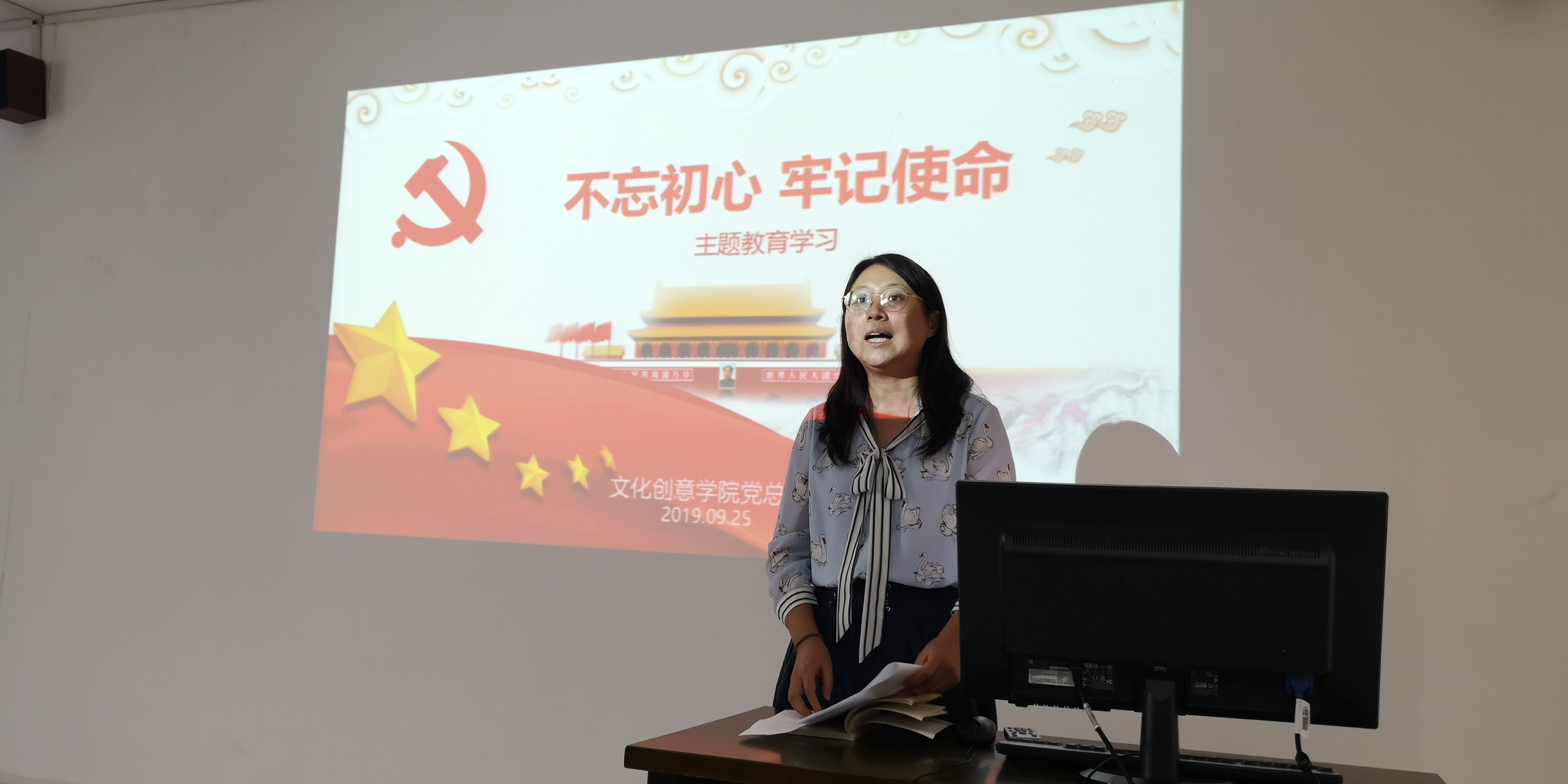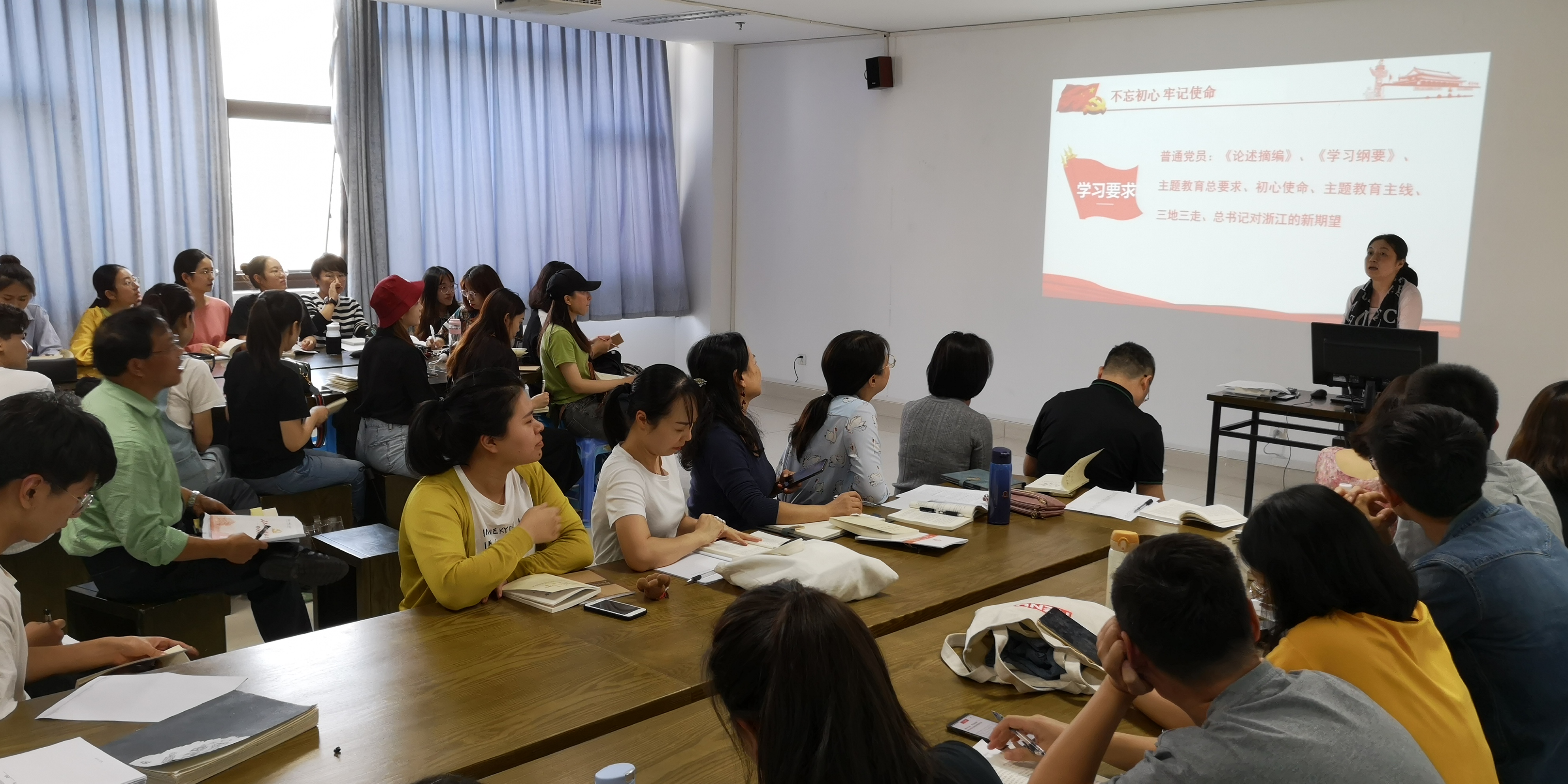 9月25日下午,厕所偷拍 党总支开展了第一次“不忘初心、牢记使命”主题教育学习会,党总支书记范小春、副院长杨欢耸、郭持华,党总支副书记周微微,全体教职工党员和学生党员悉数到场参加学习会。