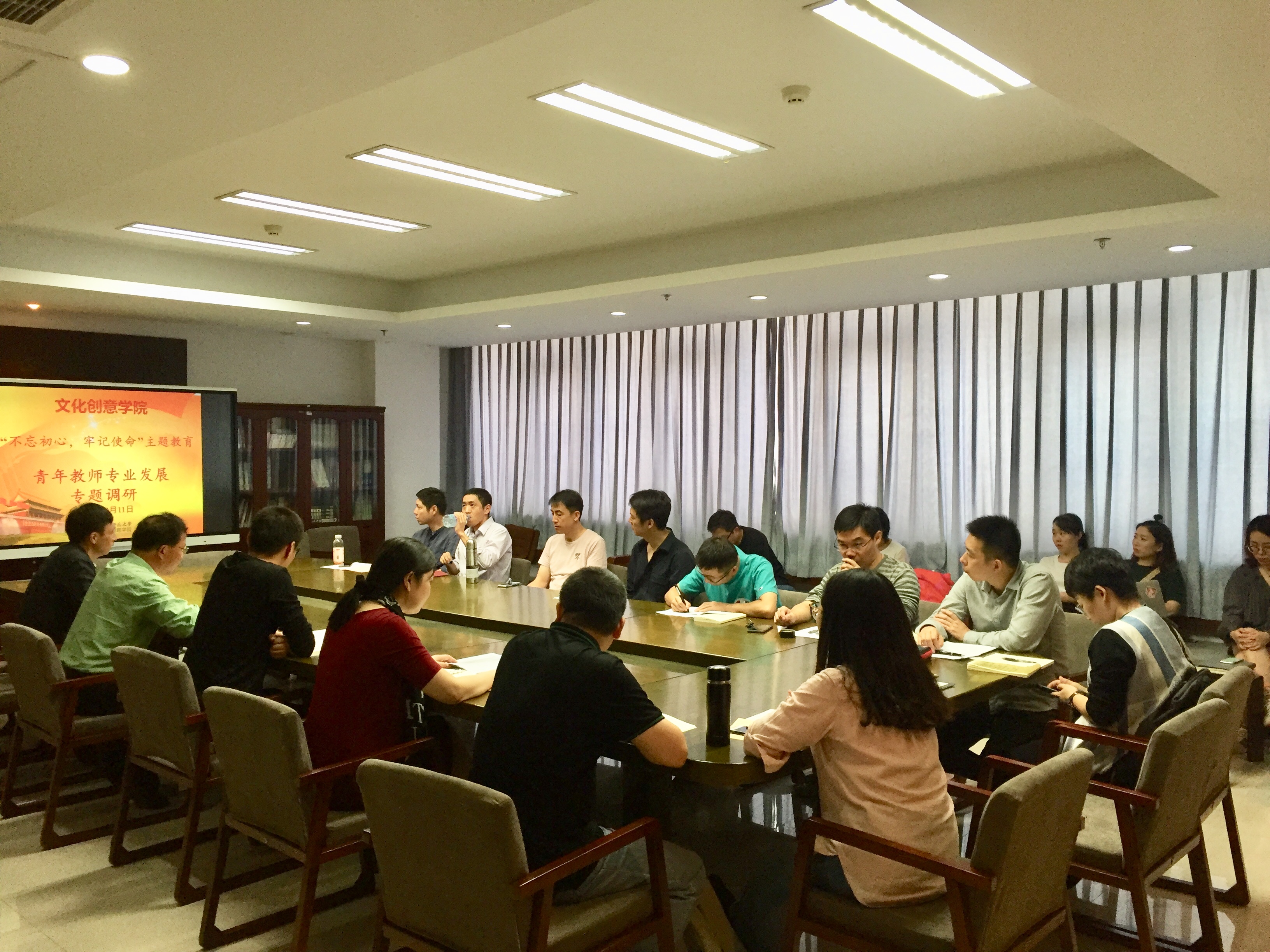 根据学校党委的相关要求,文化创意学院扎实推进“不忘初心、牢记使命”主题教育相关活动。10月11日,学院党总支组织开展“青年教师专业发展专题调研会”深入落实“对照党章找差距”专题,学院党总支书记范小春、副院长杨欢耸、副院长郭持华、副书记周微微及青年教师参加了此次专题调研会。
