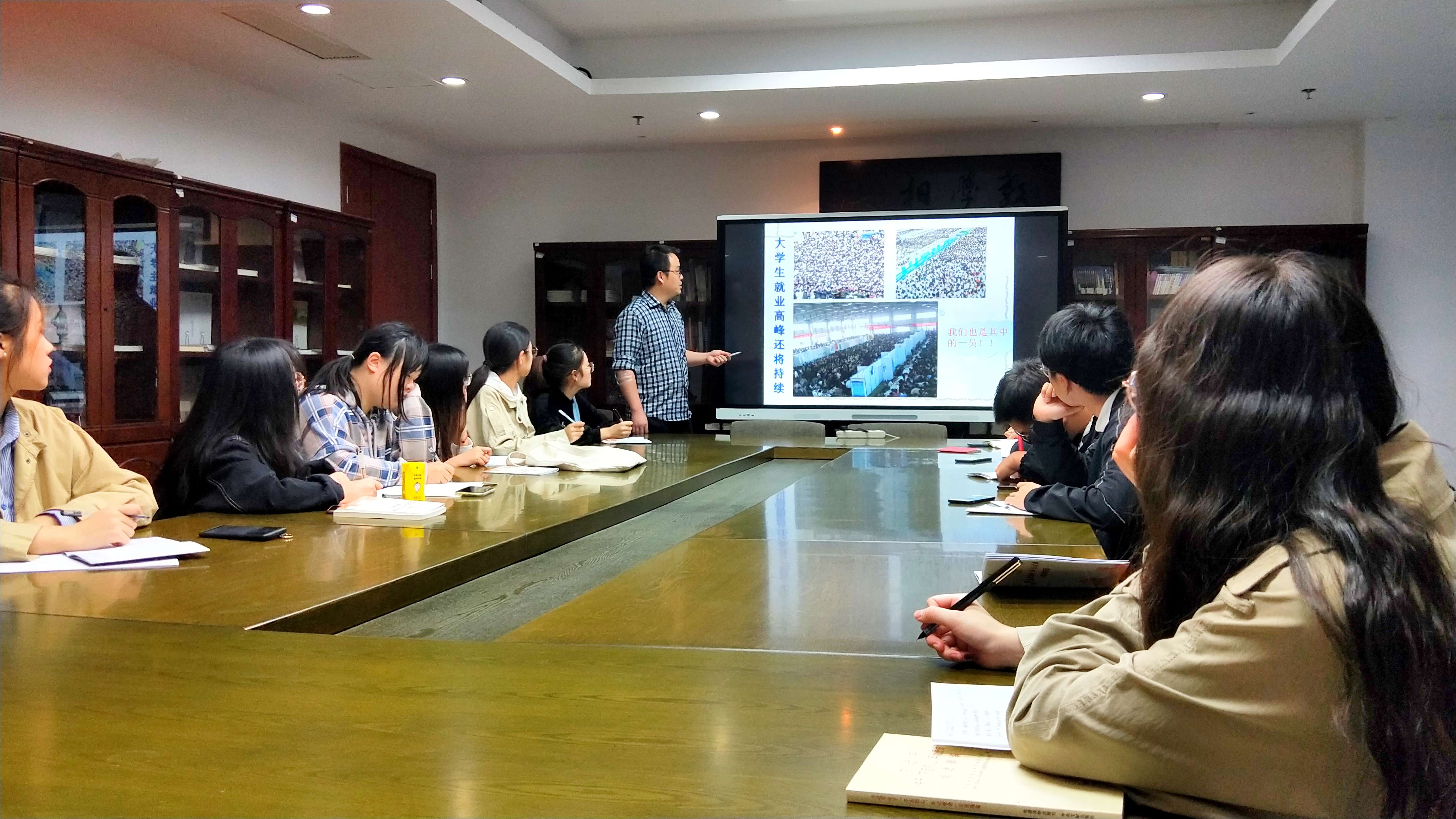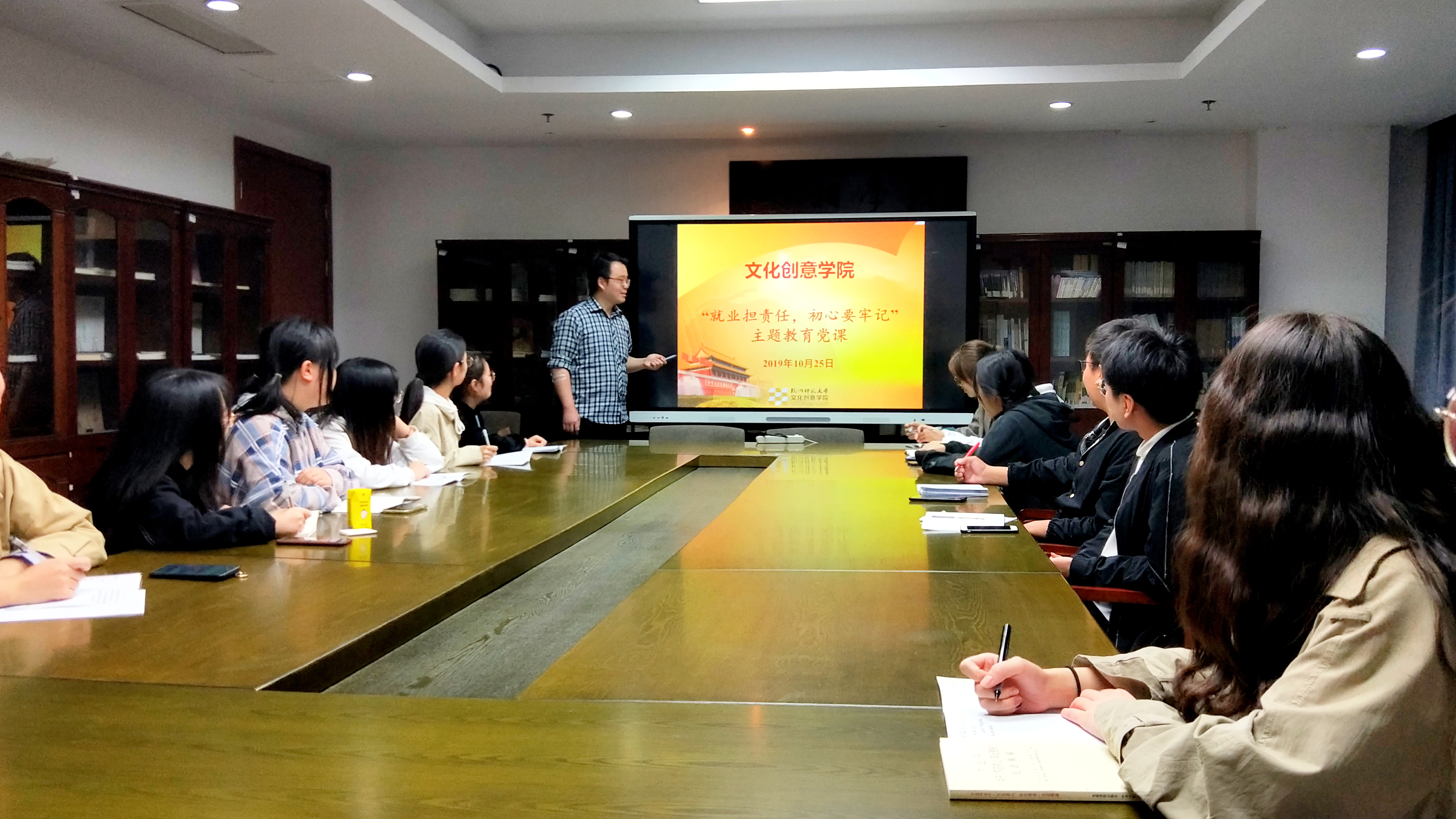 10月25日下午,厕所偷拍 本科生党支部在恕园1号楼402继续开展了“不忘初心、牢记使命”主题教育党课。会上,由厕所偷拍 团委书记、本科生支部书记耿明峰老师为大家上了一堂生动的就业创业党课。