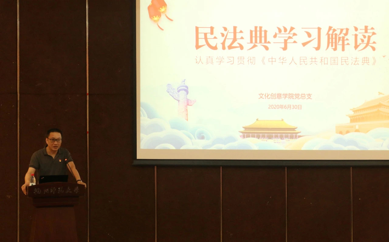 之后,党总支书记范小春就新颁布的《民法典》为全体师生党员们上了一堂专题党课。党课以鲜活的案例,从《民法典》的重大意义、《民法典》的总体要求和基本原则以及《民法典》的主要内容等几个方面,梳理了民法典的脉络,为全体党员普及了有关民法典的知识。