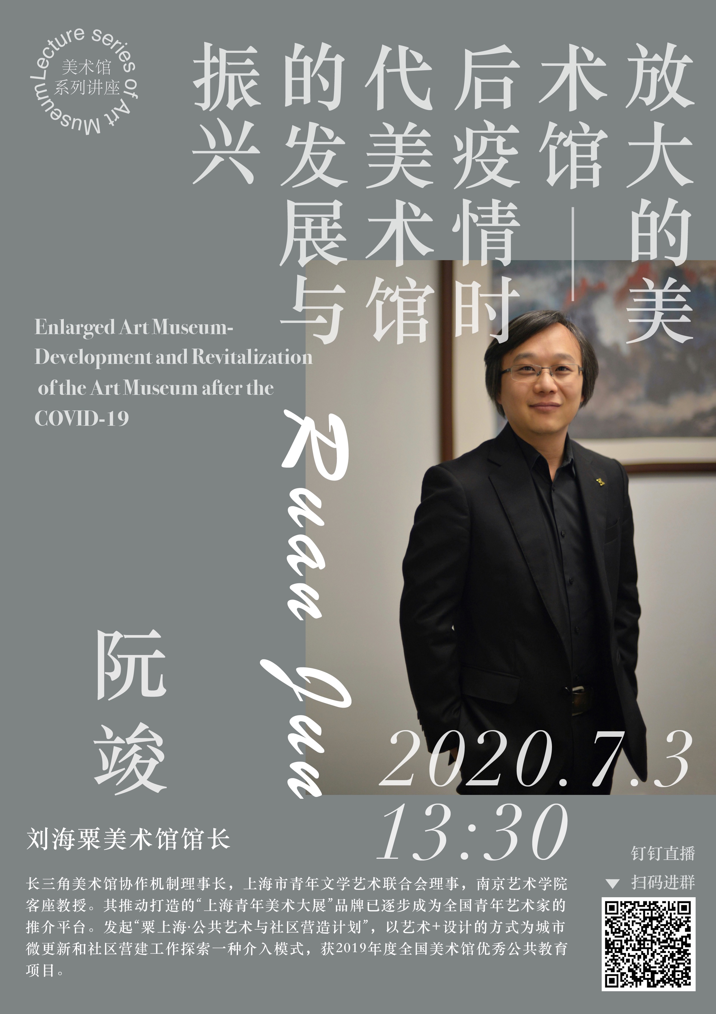 讲座人:阮竣,现任刘海粟美术馆馆长,长三角美术馆协作机制理事长,上海市青年文学艺术联合会理事,南京艺术学院客座教授。