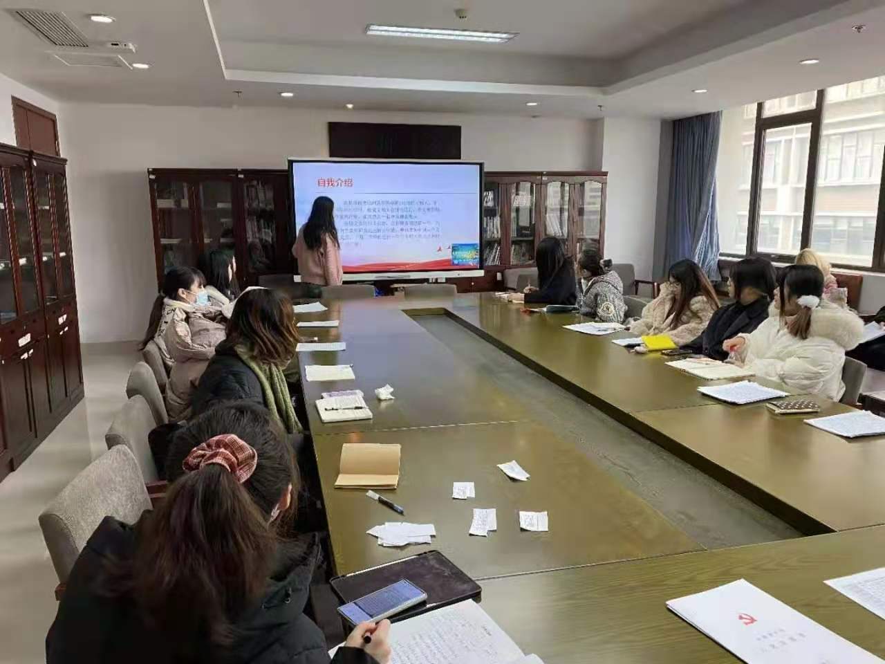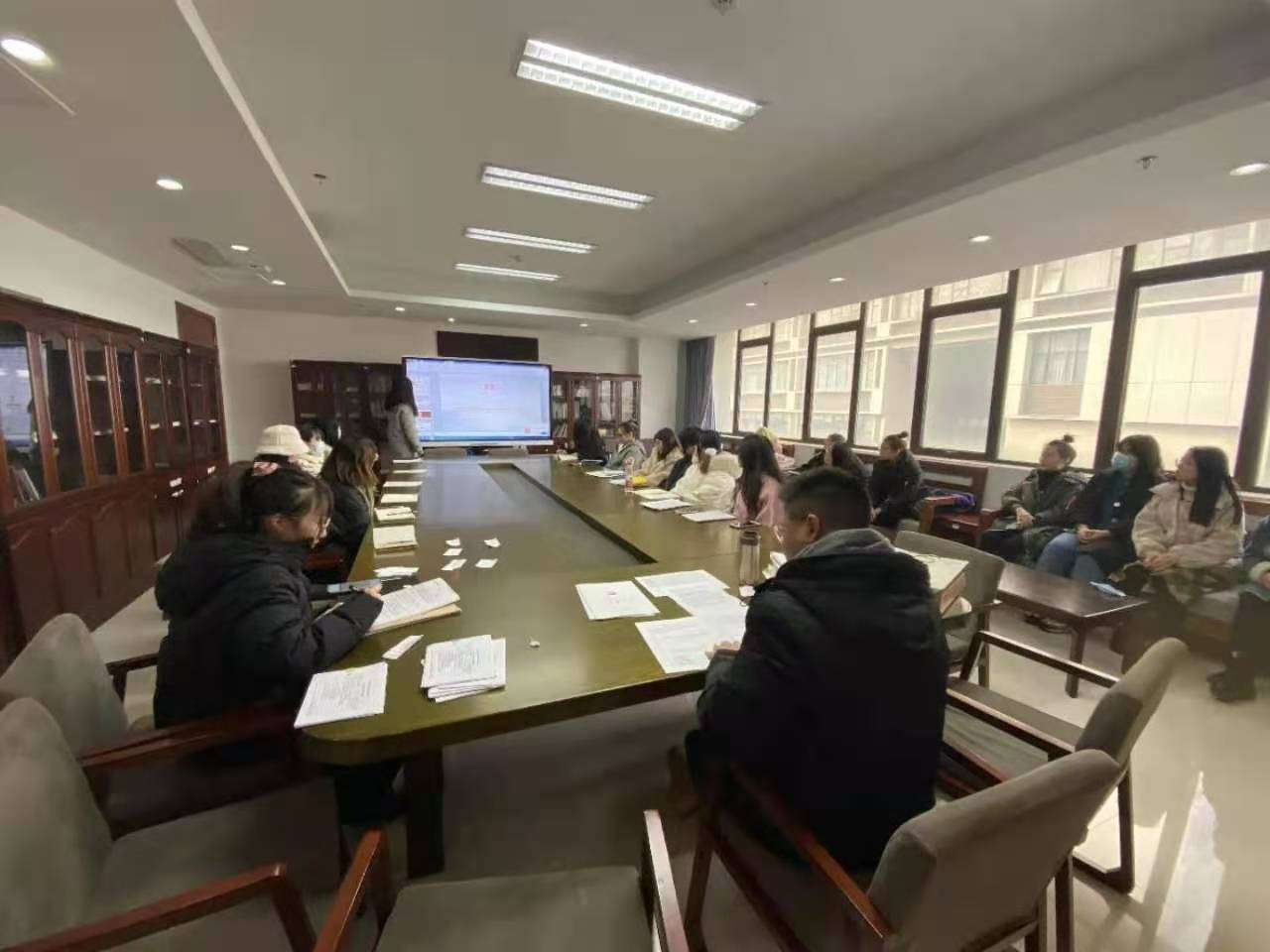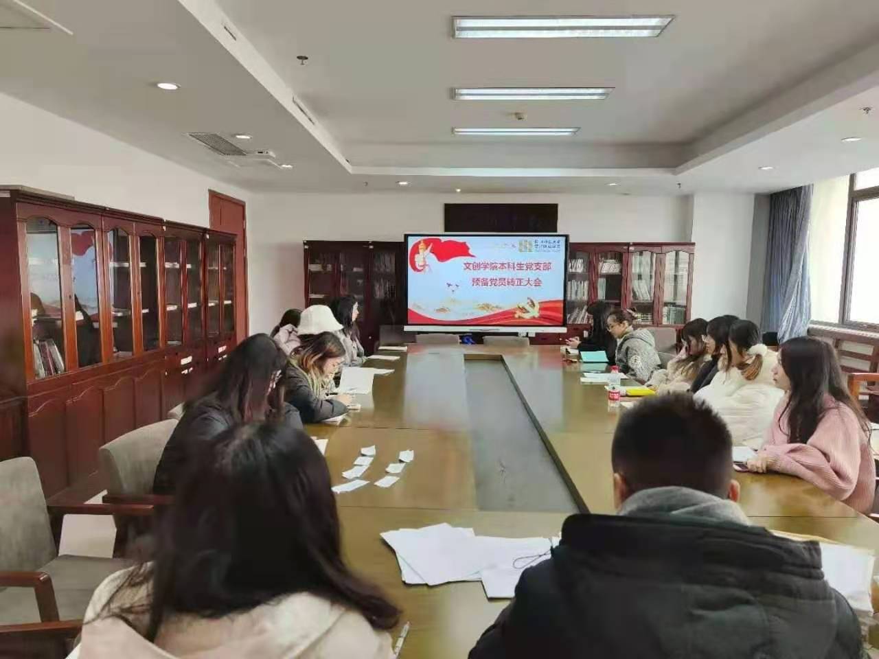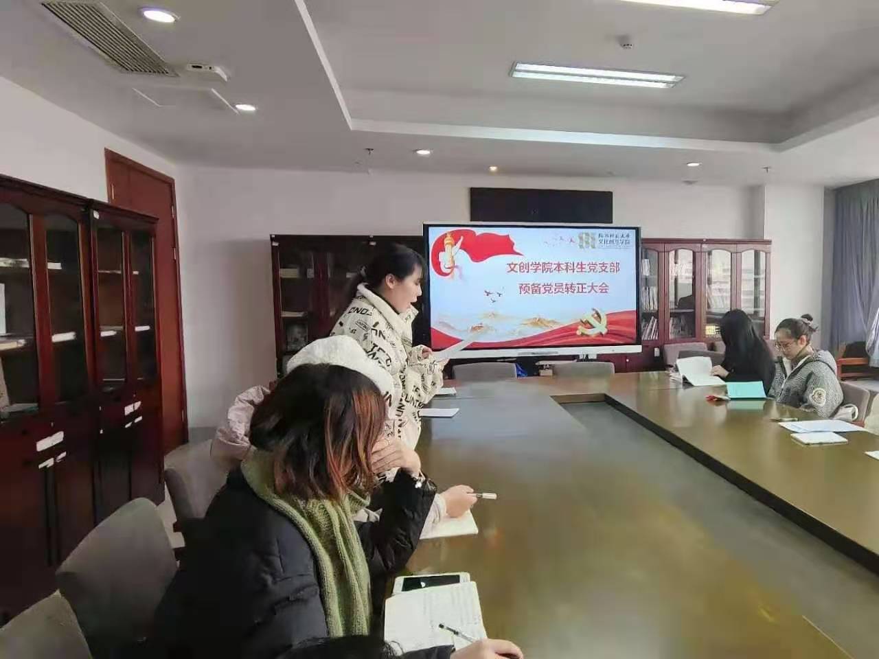 12月17日,文化创意学院本科生党支部在恕园1号楼402召开全体党员大会,讨论关于庾昕媛等7名预备党员转正的问题,本科生党支部书记王聪主持会议。