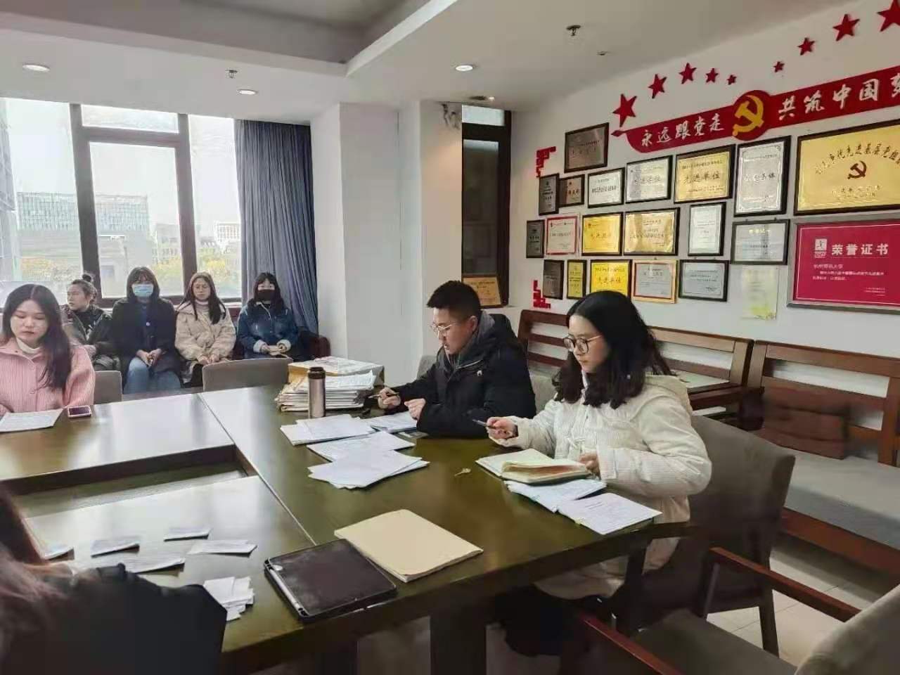 会上,庾昕媛、叶佳敏、戴宇晨、王怡人、叶伊铭、汪莎莉、陈洁7名同志宣读转正申请书,并就成为预备党员一年以来的思想、工作、生活和学习等方面情况作了详细的汇报。听取相关汇报后,刘禹彤等5名入党联系人就庾昕媛等7名同志在预备期内的考察情况进行补充说明,也指出了她们的不足之处,以及对其是否符合预备党员转正的条件发表了意见。