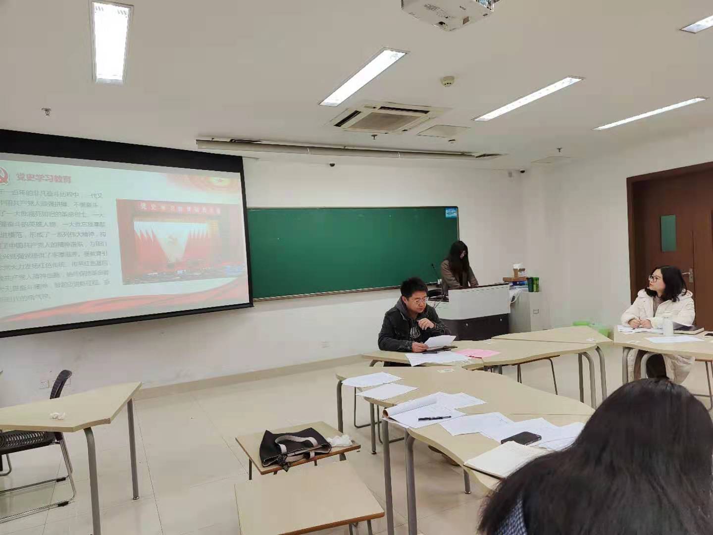 随后,王聪老师带领大家深入领会学习习近平总书记在党史学习教育大会上的重要讲话精神,他要求大家做到坚持树立正确党史观,矢志不渝践行初心使命的崇高追求;学习党史身体力行,学以致用加强党性修养;深入贯彻党史学习教育,立足技能回应时代精神呼唤,在学党史中真正做到学有所获、学有所悟、学有所成。