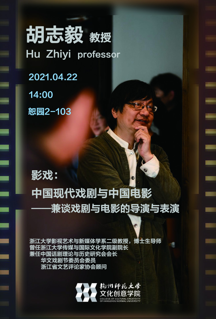 胡志毅(1957-),男,浙江大学影视艺术与新媒体学系二级教授、博士生导师,曾任传媒与国际文化学院副院长,兼任中国话剧理论与历史研究会会长、华文戏剧节委员会委员、浙江省文艺评论家协会顾问等。