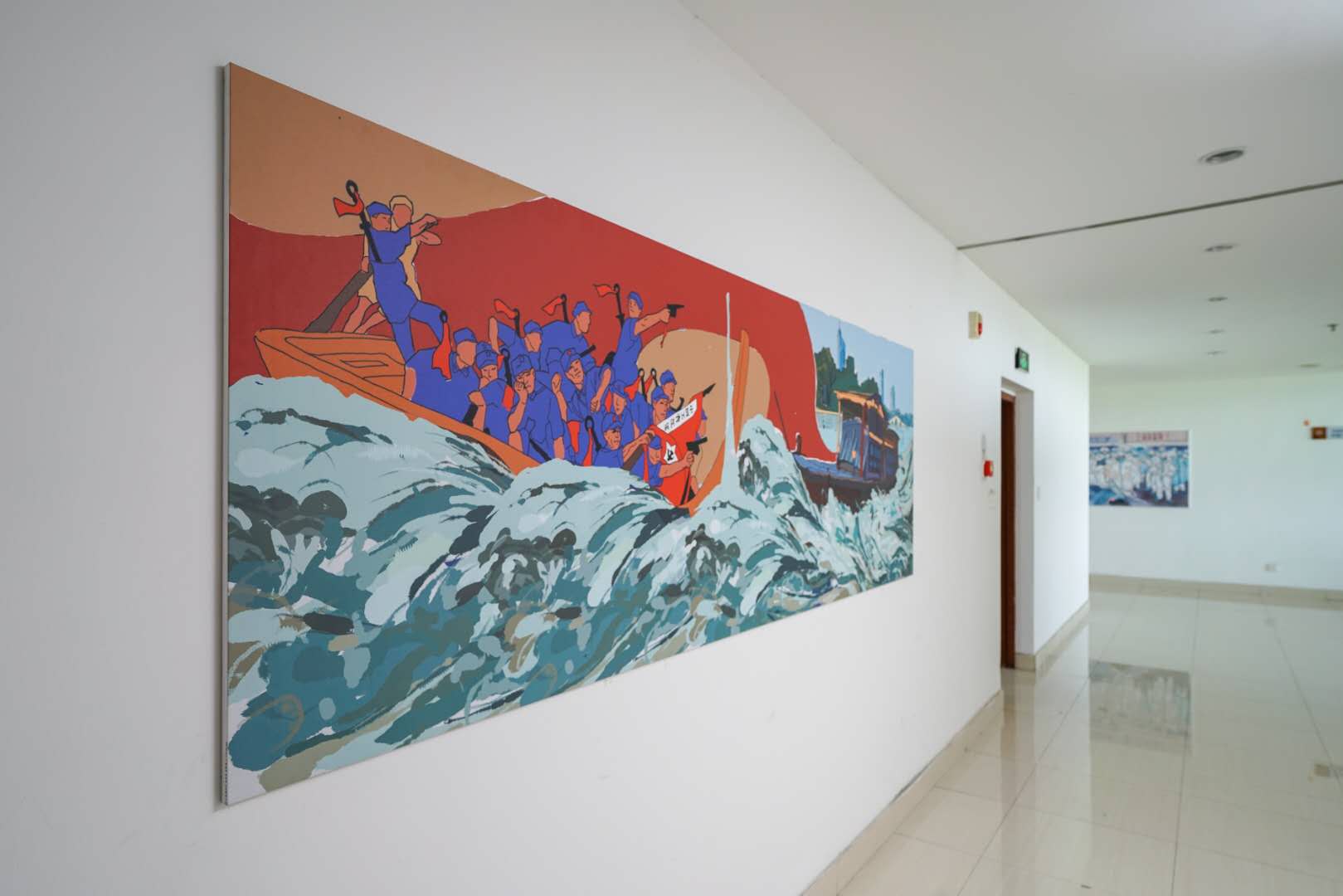 本次党史绘画展共创作党史主题作品十二幅,总面积达到三十余平方米,已全部在学校仓前校区恕园2号楼四楼展出。内容从党的创立与大革命的兴起到改革开放的展开与中国特色社会主义道路,涵盖了中国共产党百年奋斗路上的各个关键节点。在一百年的非凡奋斗历程中,一代又一代中国共产党人顽强拼搏、不懈奋斗,涌现了一大批视死如归的革命烈士、一大批顽强奋斗的英雄人物、一大批忘我奉献的先进模范,构筑起了中国共产党人的精神谱系,也极大丰富了民族精神内涵。文传学子用艺术创作生动描绘了党的红色故事,用画作展现了红船精神、井冈山精神、抗美援朝精神、抗疫精神等伟大精神,体现了中国共产党百年征程路上的波澜壮阔,以实际担当传承红色基因。