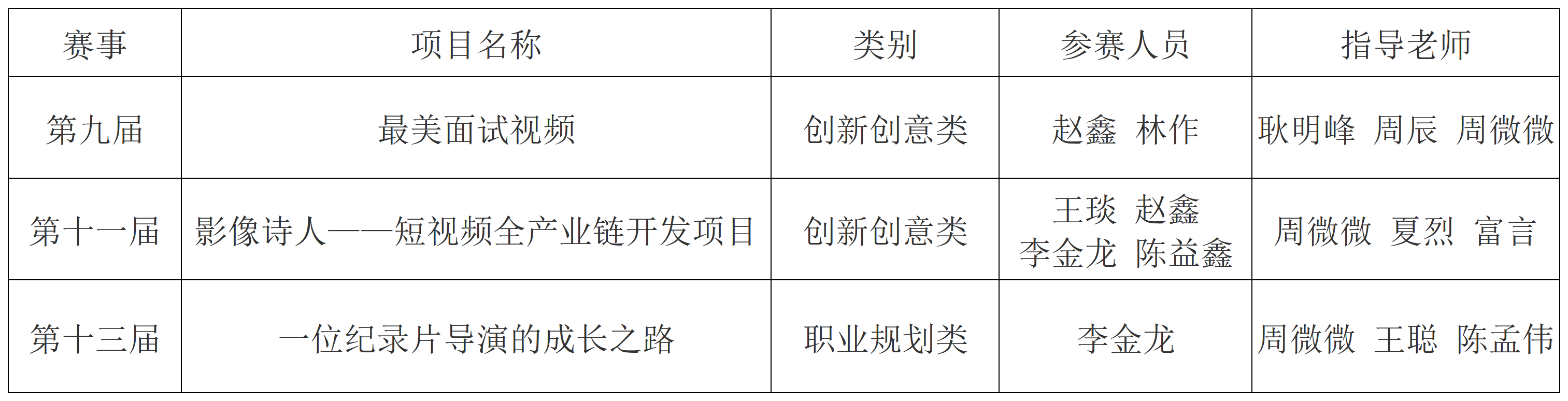 本届大赛中,李金龙同学以《一位纪录片导演的成长之路》为题,展示自己立志成为一名优秀的纪录片导演的职业梦想,荣获职业规划类(本研组)一等奖,并被授予“2021年浙江省最佳职业规划之星”荣誉称号。周微微、王聪、陈孟伟三位老师被评为“优秀指导教师”。