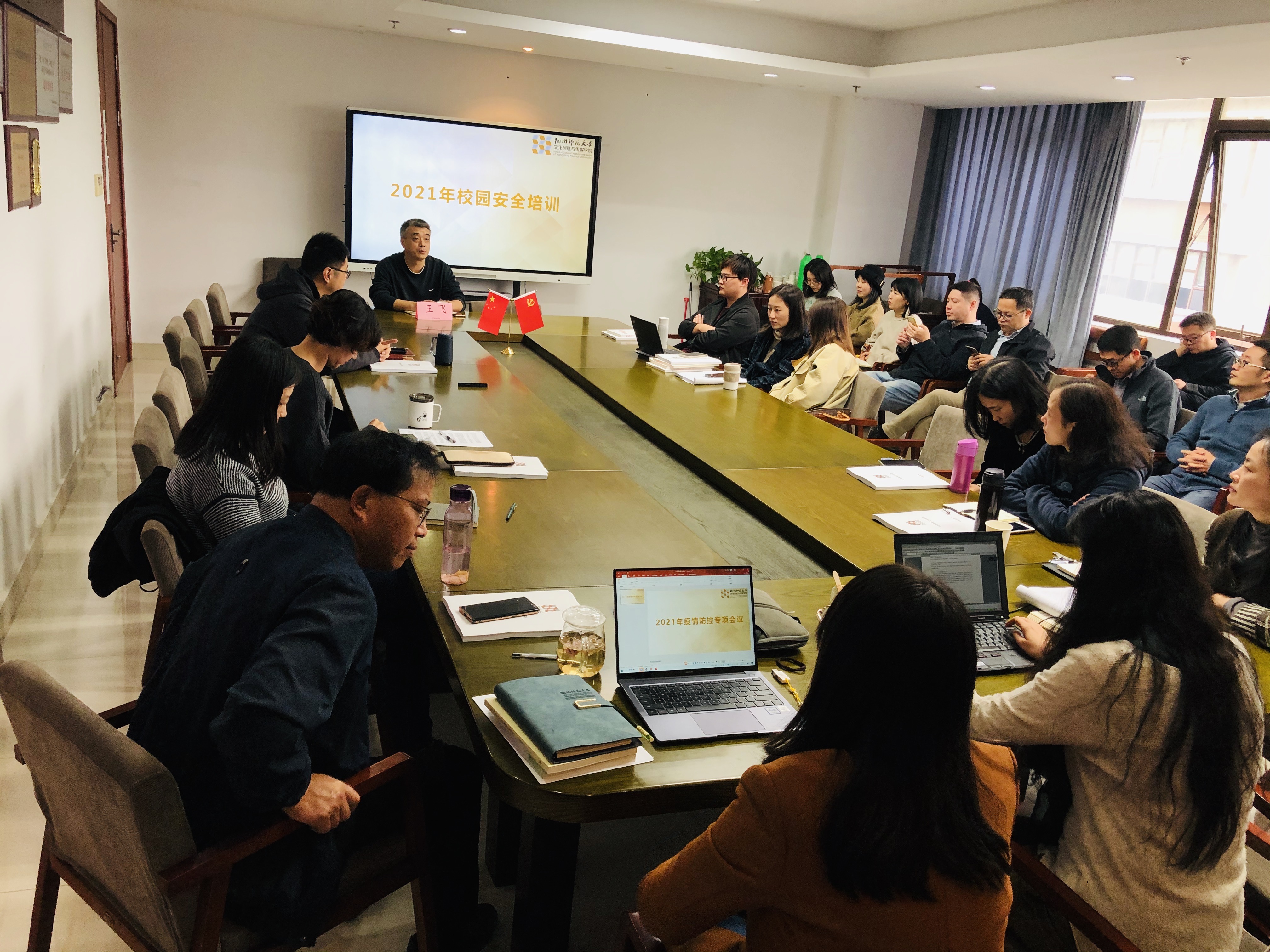 最后大会还邀请校保卫处处长王飞处长做了2021年校园安全培训。王飞从疫情管理、消防、网络咋骗、政治安全、不当言论、财务安全、非机动车管理几个方面对全体教工做了简要的安全提示。会议完满结束。