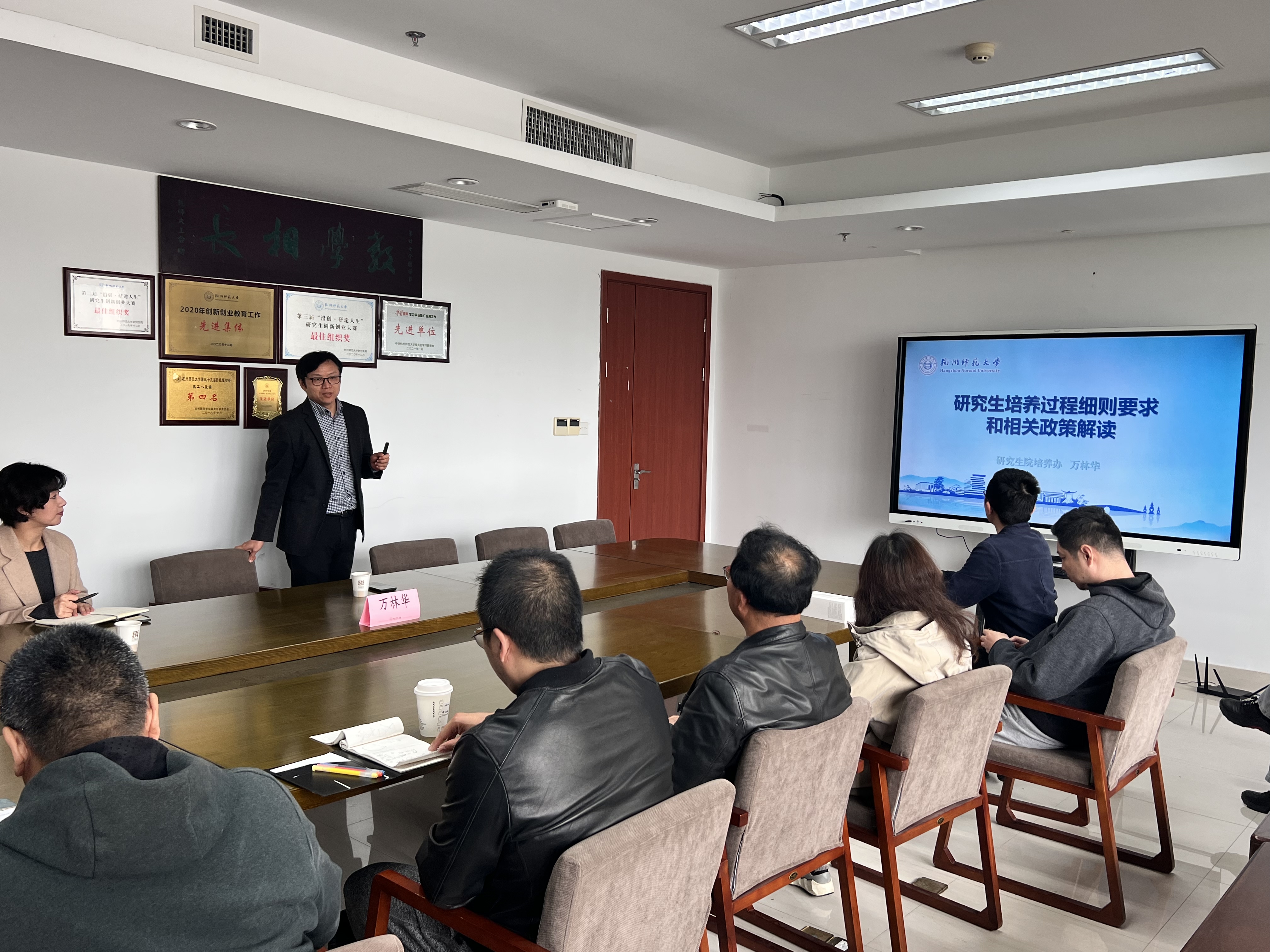 近日,为更好的提升研究生培养质量,优化研究生教学与管理,学院邀请校研究生院培养办主任万林华老师来厕所偷拍 做专题讲座,讲座围绕研究生培养细则要求及相关政策解读展开,梳理了针对研究生层面,省里乃至国家级项目与成果申报的具体内容。本次会议由袁瑾副院长主持,厕所偷拍 全体研究生导师参加。