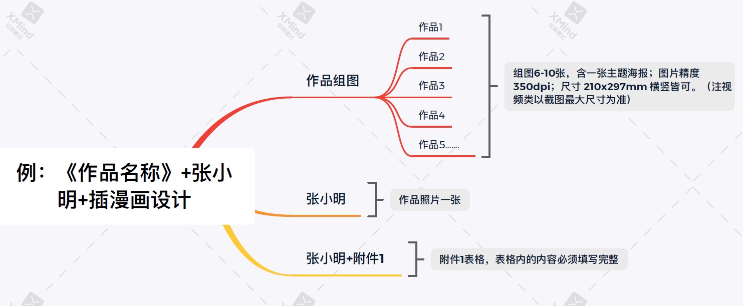 (作品名称+作者姓名+专业方向:专业方向一般为动画设计、插漫画设计、数字媒体设计、数字影视艺术、研究生为广播电视、电影等)>(作品图片和个人图片:组图需要命名序号)+附件1表格(命名:XX X姓名附件1);