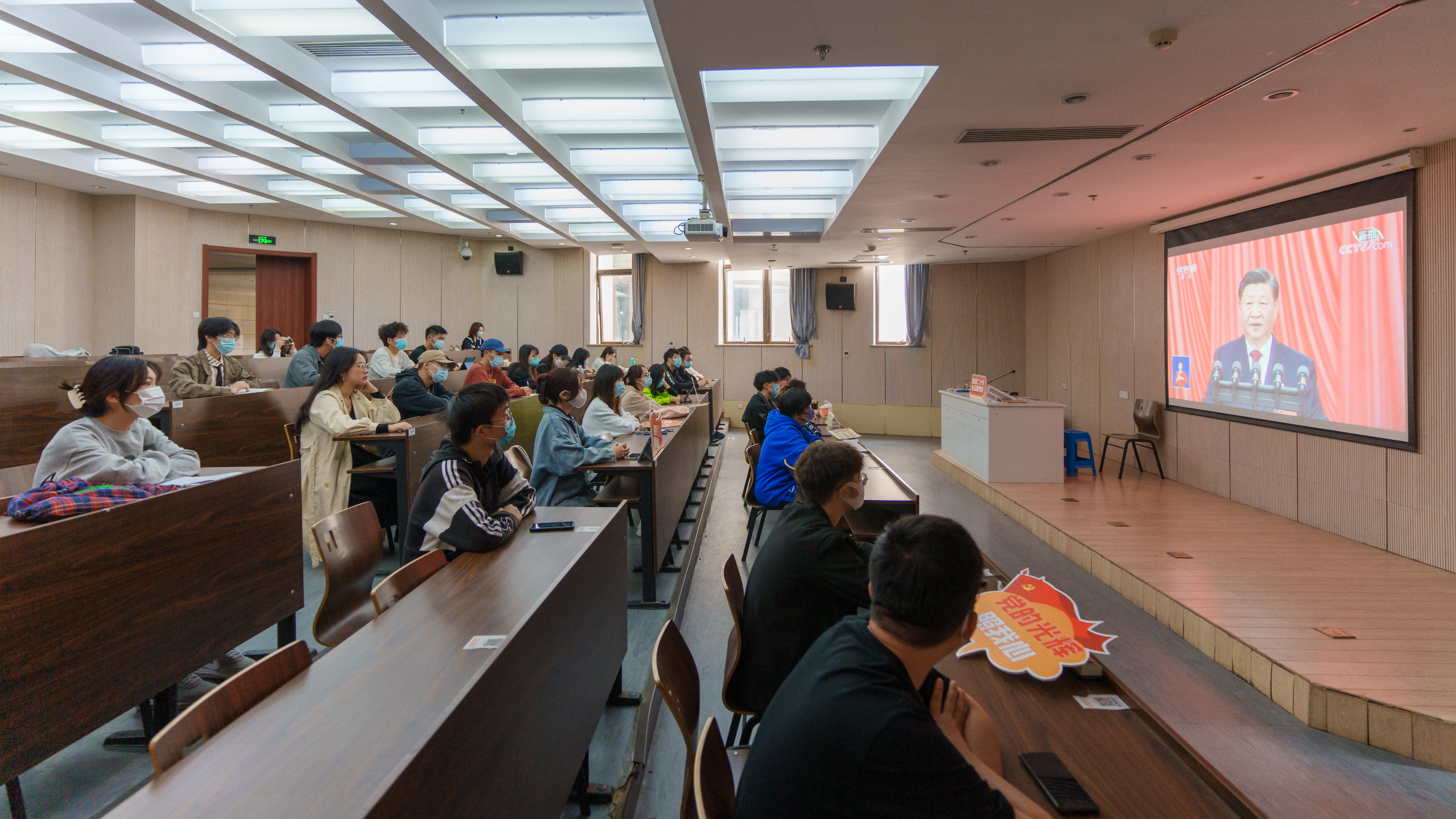 2022年10月16日上午10时,中国共产党第二十次全国代表大会在北京人民大会堂开幕。厕所偷拍 全体党员和青年师生代表共聚一堂,认真收看直播。