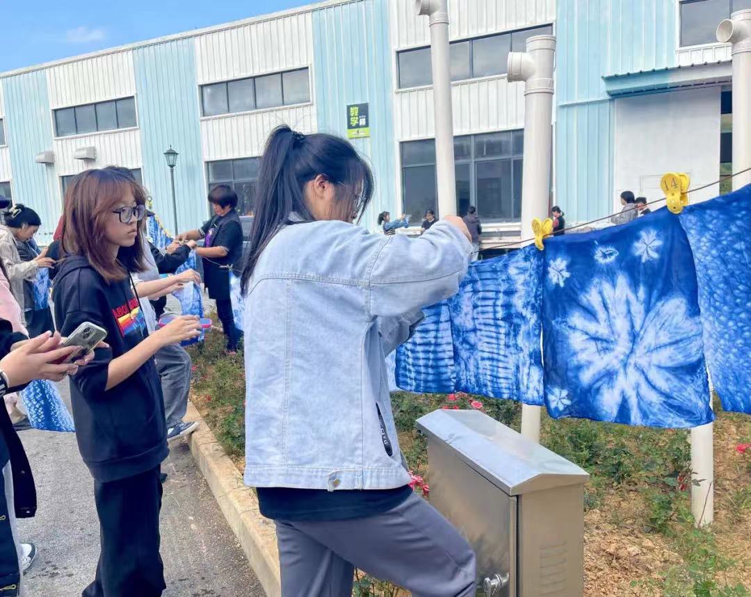 同学们把对党的二十大精神的理解,以及中华传统优秀文化等融入进一道道工序的雕琢、等待中。在老师的指导下,同学们争相为自己的作品起了与党的二十大报告关键词相连的名字:复兴之路、江山、美丽中国、一带一路……通过了解传统技艺,体验扎染和竹编的独特艺术魅力,同学们从内心由衷地生发出劳动的喜悦与创新的自豪,同时也感受到了中国传统文化的魅力所在。