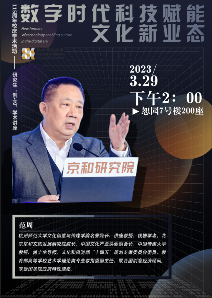 讲座预告|研究生“创•艺”学术讲座——范周教授“数字时代科技赋能文化新业态”