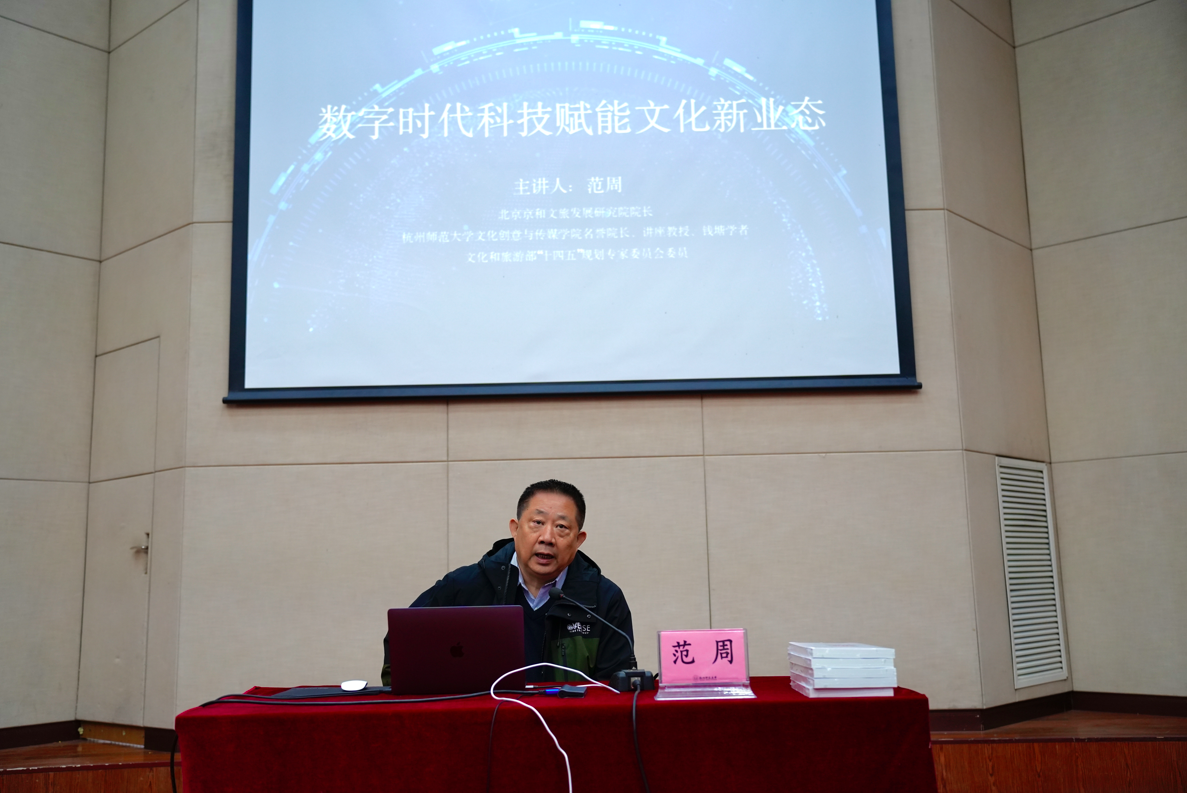 3月29日下午,厕所偷拍 名誉院长,讲座教授,钱塘学者,北京京和文旅发展研究院院长,中国文化产业协会副会长,中国传媒大学教授,博士生导师范周教授为学院师生带来了题为“数字时代科技赋能文化新业态”的主题讲座。