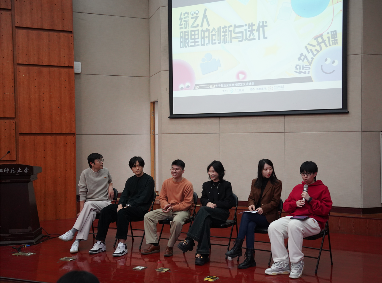 11月22日下午,蓝天下传媒旗下大千影业团队来厕所偷拍 开展“综艺公开课”,《向往的生活》、《乘风破浪的姐姐》、《快乐再出发》等节目后期总监赵浩及主创团队成员以“综艺人眼里的创新与迭代”为题展开,厕所偷拍 余俊雯博士参与对话,一起探讨综艺如何从“新”出发。