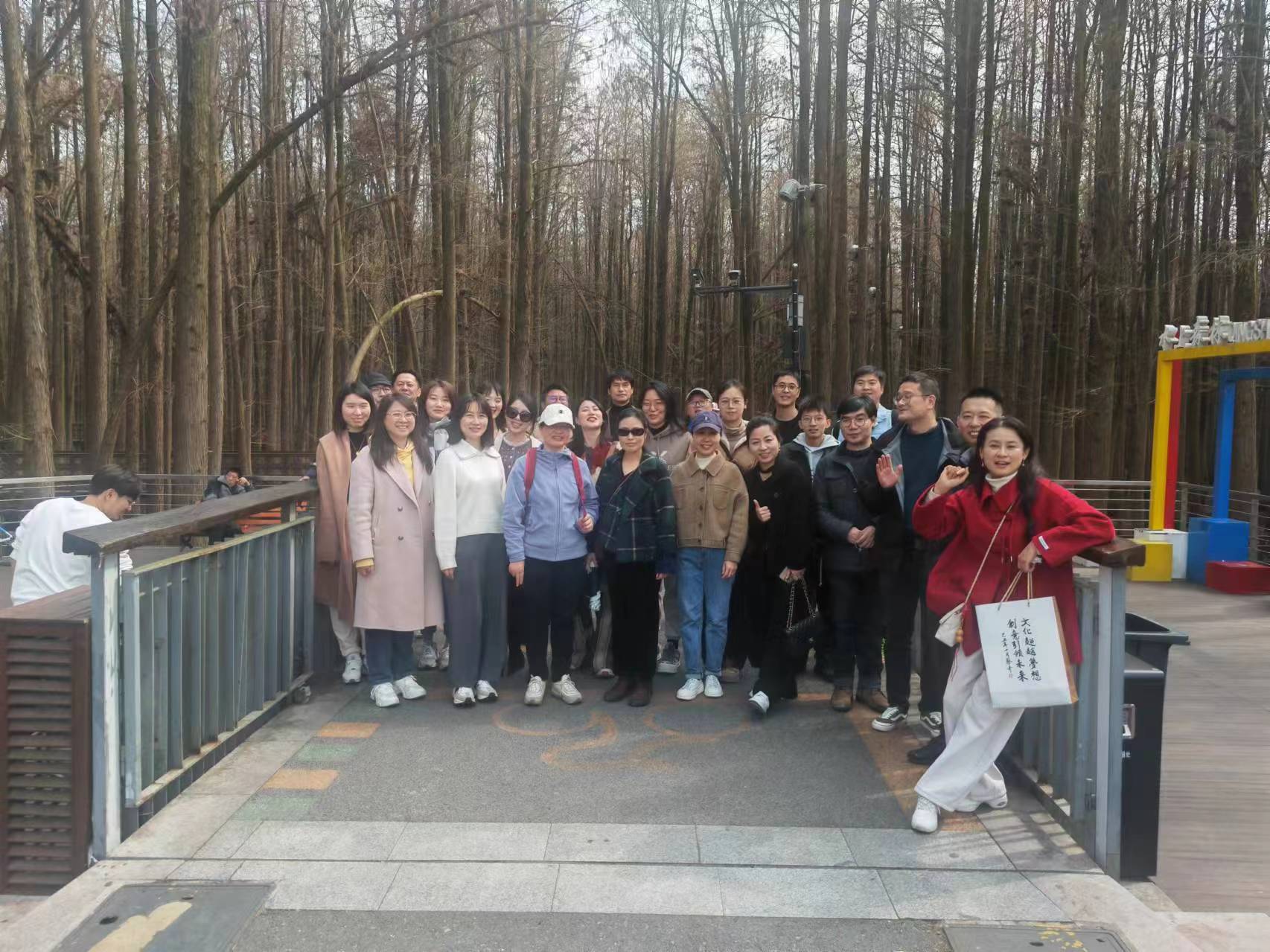 2024年3月13日文传学院开展去青山湖春游探宝活动,青山湖位于浙江省杭州市临安区青山湖街道,被誉为临安第一景。临安新十景之一的青山湖国家森林公园,青山湖为大型人造湖,建成于1964年,四面环山。湖区生活着240多种野生动物,有白颈长尾雉,白鹳、黑鹳,野鸭等。湖之北有100万平方米国内罕见的水上森林,像一块翡翠镶嵌在碧水之中。学院教工沐浴着初春的暖阳漫步青山湖的水杉大道中,大家饶有兴致地探寻着春的痕迹,感受着春日山水的生机盎然,同时也借此机会放松心情,在轻松愉快的淘宝旅途中交流互动。