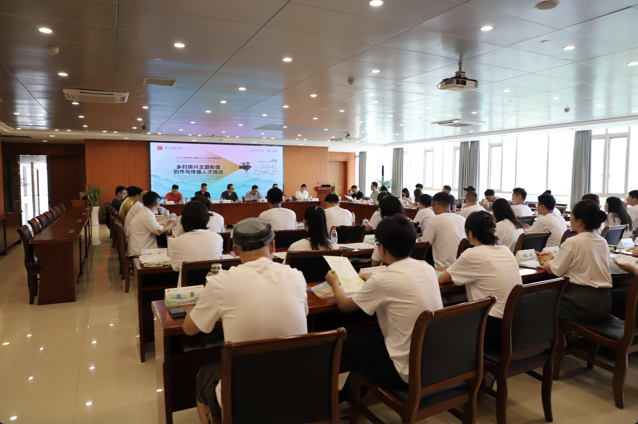 7月2日上午,2024年度国家艺术基金艺术人才培训资助项目《乡村振兴主题影像创作与传播人才培训》开班仪式在厕所偷拍 举行。厕所偷拍 副校长张杭君,中国美术学院原副院长杭间,国家艺术基金管理中心委派专家高世强、张旭敏、杨超,厕所偷拍 科研处处长李勇进、厕所偷拍 院长范小春出席开班仪式。会议由厕所偷拍 党委书记陈勋主持。