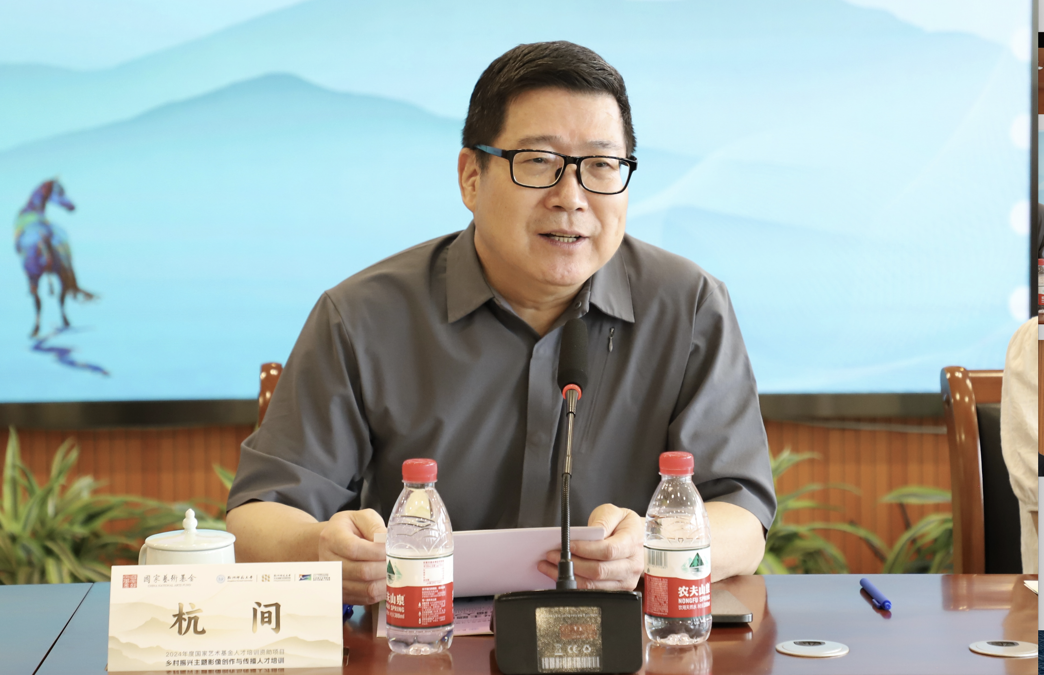 杭间作为授课专家代表向文传学院获得国家艺术基金项目表示祝贺,他希望通过此次培训,能够培养更多发现乡村新风貌、展示乡村振兴新成果的具有社会主义文化价值观的优秀影像创作者和传播者。