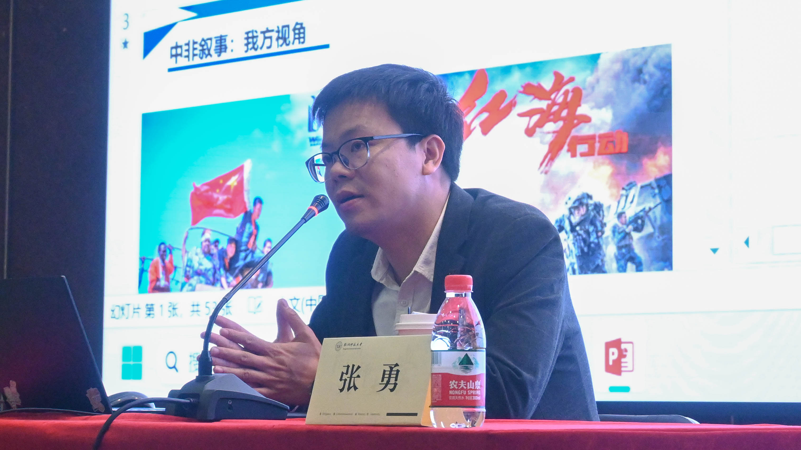 张勇老师从“中非叙事中的叙事视角”展开话题,分别从纪录片的多重视点、叙事和形象建构的角度梳理影片中出现的非洲形象,分享创作实践过程中和影像国际传播中的思考与反思。