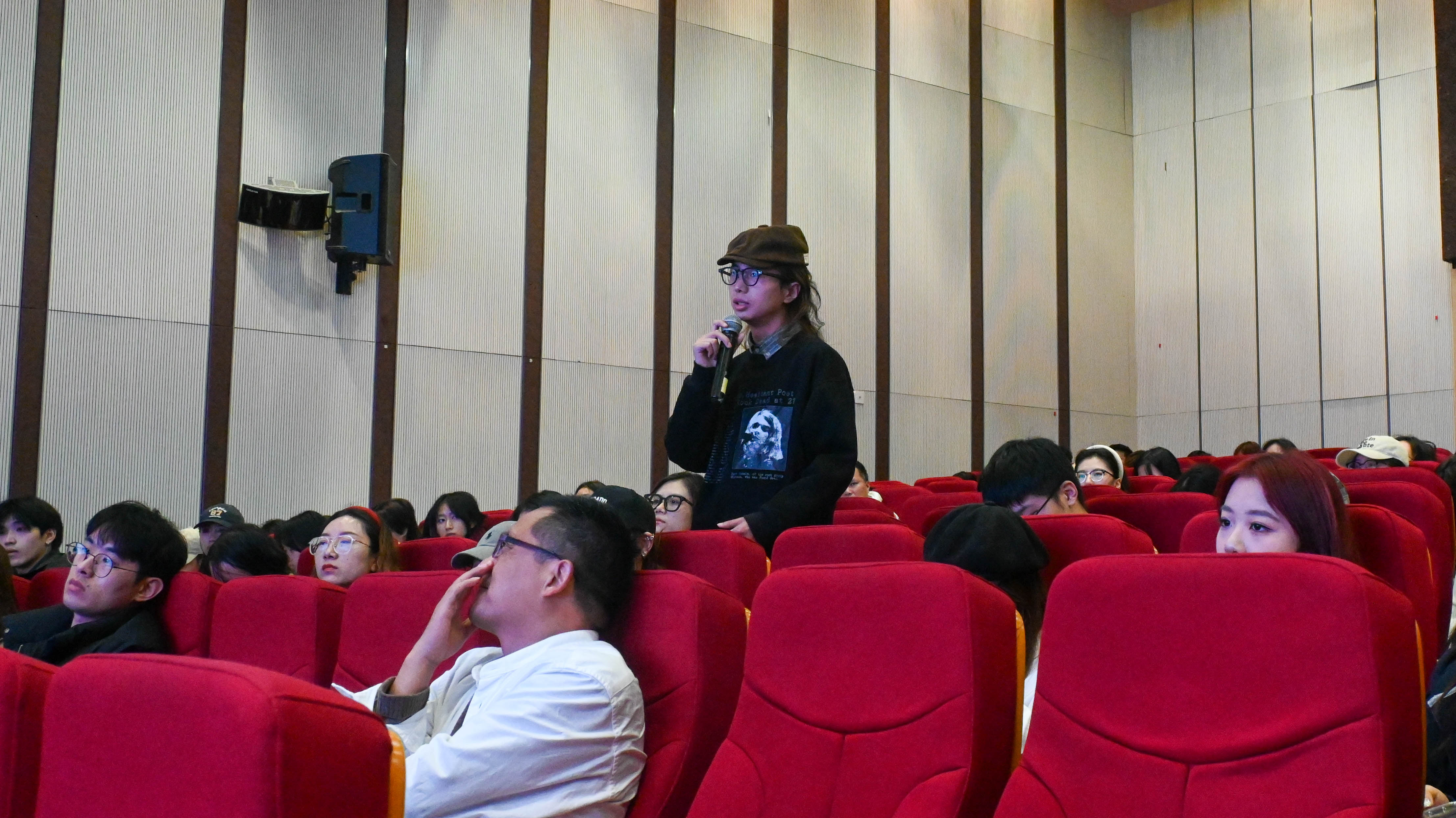 交流环节,张勇老师细致严谨地回答了同学们的提问。在回答“面对纪录片拍摄过程中的不确定性”时,张勇老师认为:纪录片最大的魅力在于“不可预知”,但是作为创作者要有结构性的提纲,明确拍摄主题。