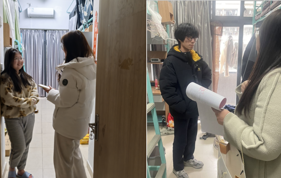 1月8日,辅导员王斐敏、程熙深入仓前校区学生寝室,将关怀与教育带到学生身边,扎实推进安全教育工作。在走访过程中,辅导员特别关注宿舍的用电安全,检查了插座、电线等用电设施,强调了用电安全是宿舍安全管理的重要组成部分,同时对寒假的安全事项进行了提醒。