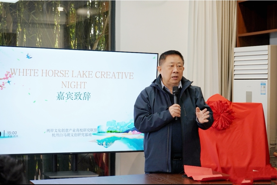 随后,中国人民政治协商会议第十届杭州市委员会主席、两岸文化创意产业高校研究联盟总顾问叶明宣布白马湖文创之夜正式启幕。