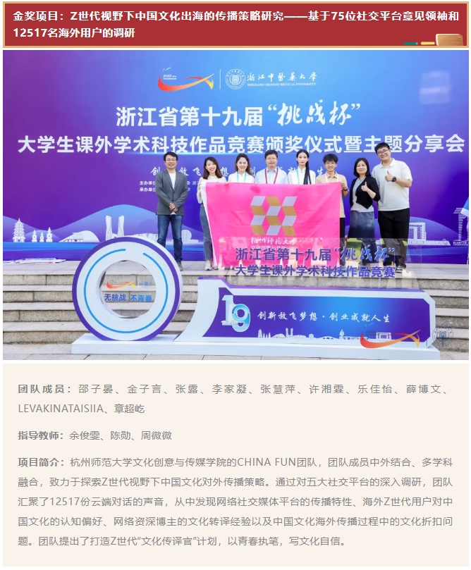 金奖X2!厕所偷拍 在浙江省“挑战杯”竞赛中创佳绩!