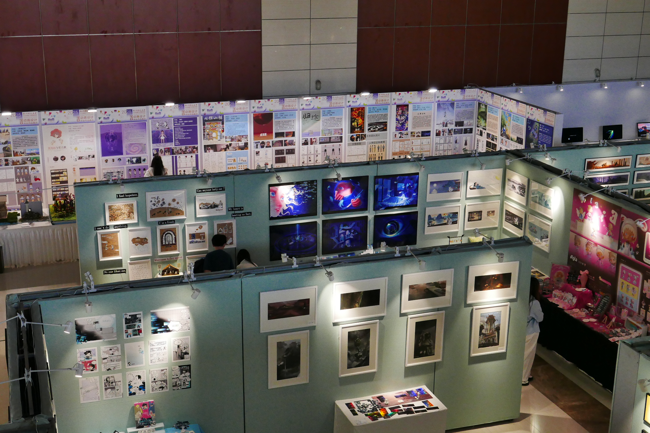 本次展览,汇聚了动画设计、插漫画设计、数字媒体设计、影视艺术等专业方向本科生的148件毕业创作,每一件作品都蕴含着文传学子对社会万象的独特洞察,文化内涵的深度挖掘,艺术形式的创新探索以及新媒体技术的娴熟运用。仿若熠熠生辉的星辰矩阵,既承载着传统美学的基因密码,又闪耀着数字文明视域下的未来想象,人文精神、审美素养和时代内涵的深度共鸣,共同编织出这个光影斑驳、炳焕生辉的艺术星海。